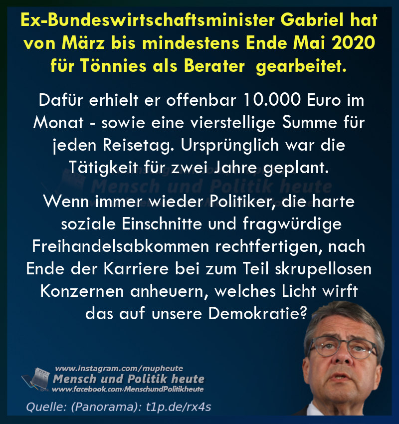 Die NRW-Landesregierung hat anscheinend bei Tönnies andere Gesetze gelten lassen, und jetzt hat auch der ehemalige Bundeswirtschaftsminister bei dem skrupellosen Fleischkonzern den Berater gemacht und sich jetzt wohl schnell weggeduckt.